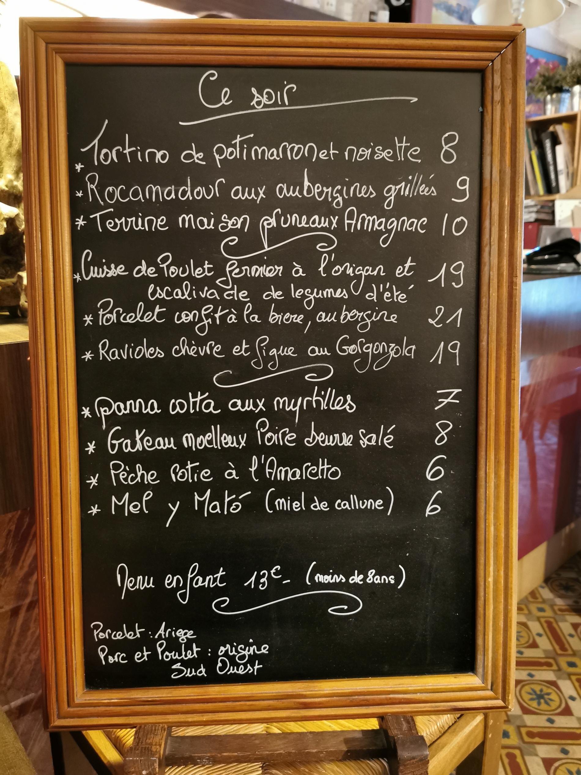 Ouvert uniquement le soir, une petite ardoise de saison propose des plats d’inspiration locale et méditerranéenne, où les saveurs des plantes aromatiques du jardin et les épices subtilement dosées viennent sublimer les recettes. Chaque création invite au voyage gustatif, tout en mettant à l’honneur les produits du terroir.